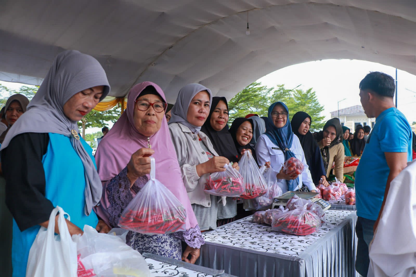 Rinciannya, harga cabai merah di bazar hanya Rp30.000 per kilogram, sedangkan di pasaran mencapai Rp50.000. Cabai rawit dijual Rp60.000 per kilogram, lebih murah dibanding harga pasaran yang menembus Rp80.000. Sementara minyak goreng dijual seharga Rp15.500 per liter, lebih terjangkau dibanding harga pasar Rp18.000.