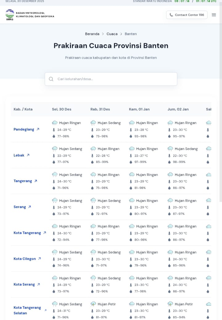 SERANG, RUBRIKBANTEN — Polda Banten mengimbau masyarakat untuk meningkatkan kewaspadaan menyusul potensi cuaca tidak menentu di wilayah Banten berdasarkan pembaruan informasi Badan Meteorologi, Klimatologi, dan Geofisika (BMKG) Banten, Selasa (30/12/2025).