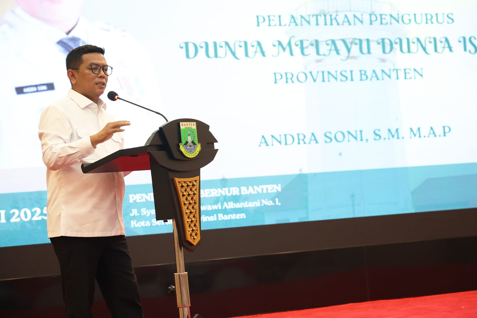 “Selamat dan sukses kepada para pengurus DMDI Provinsi Banten yang baru dilantik,” ucap Gubernur Andra dalam sambutannya.