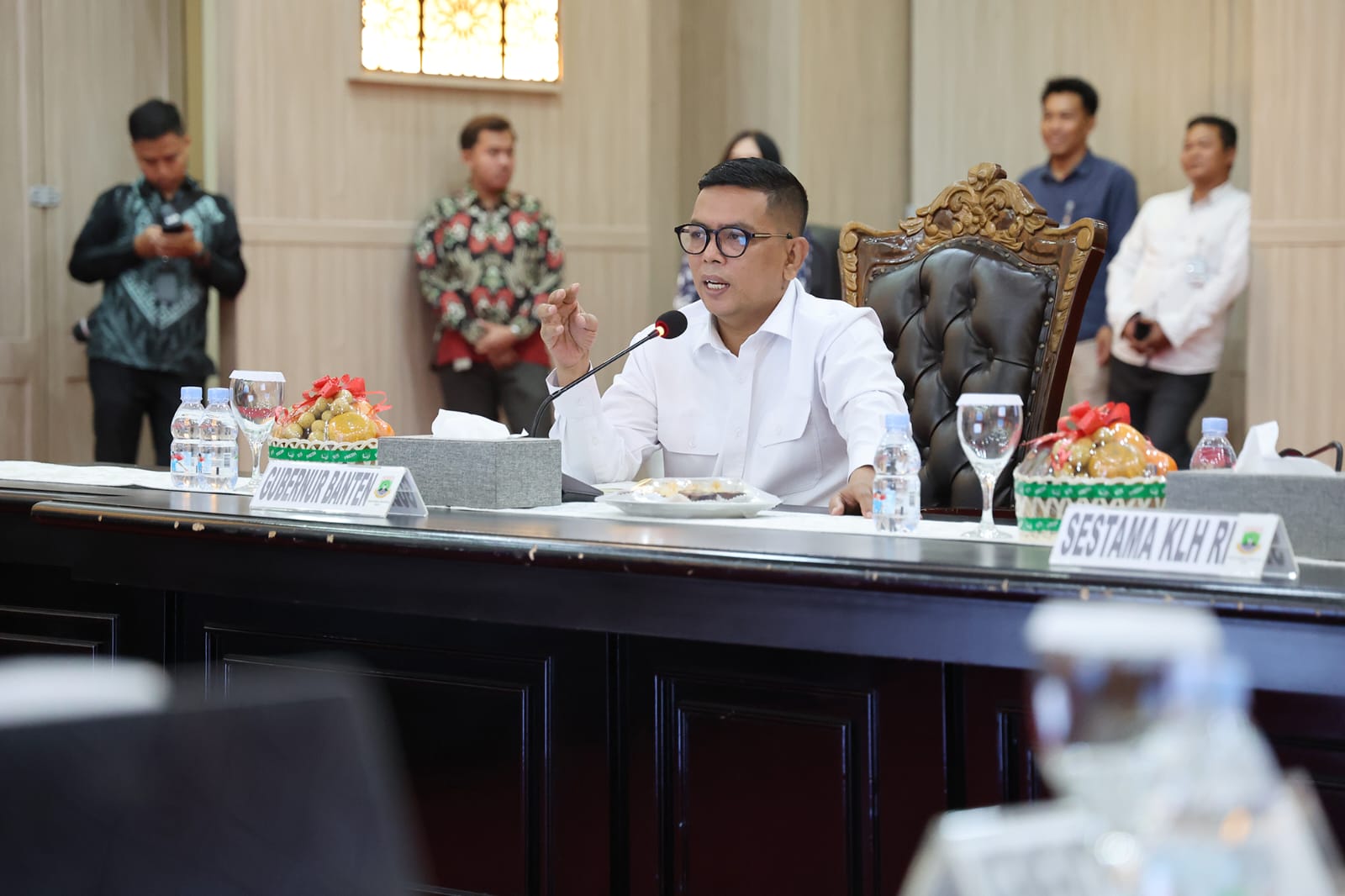 Hal itu disampaikan Andra Soni saat memimpin Rapat Koordinasi Pengelolaan Sampah Provinsi Banten bersama Sekretaris Utama Kementerian Lingkungan Hidup (KLHK) Rosan Vivien Ratnawati serta jajaran pemerintah kabupaten/kota di Pendopo Gubernur Banten, KP3B-Curug, Kota Serang, Jumat (12/9/2025).