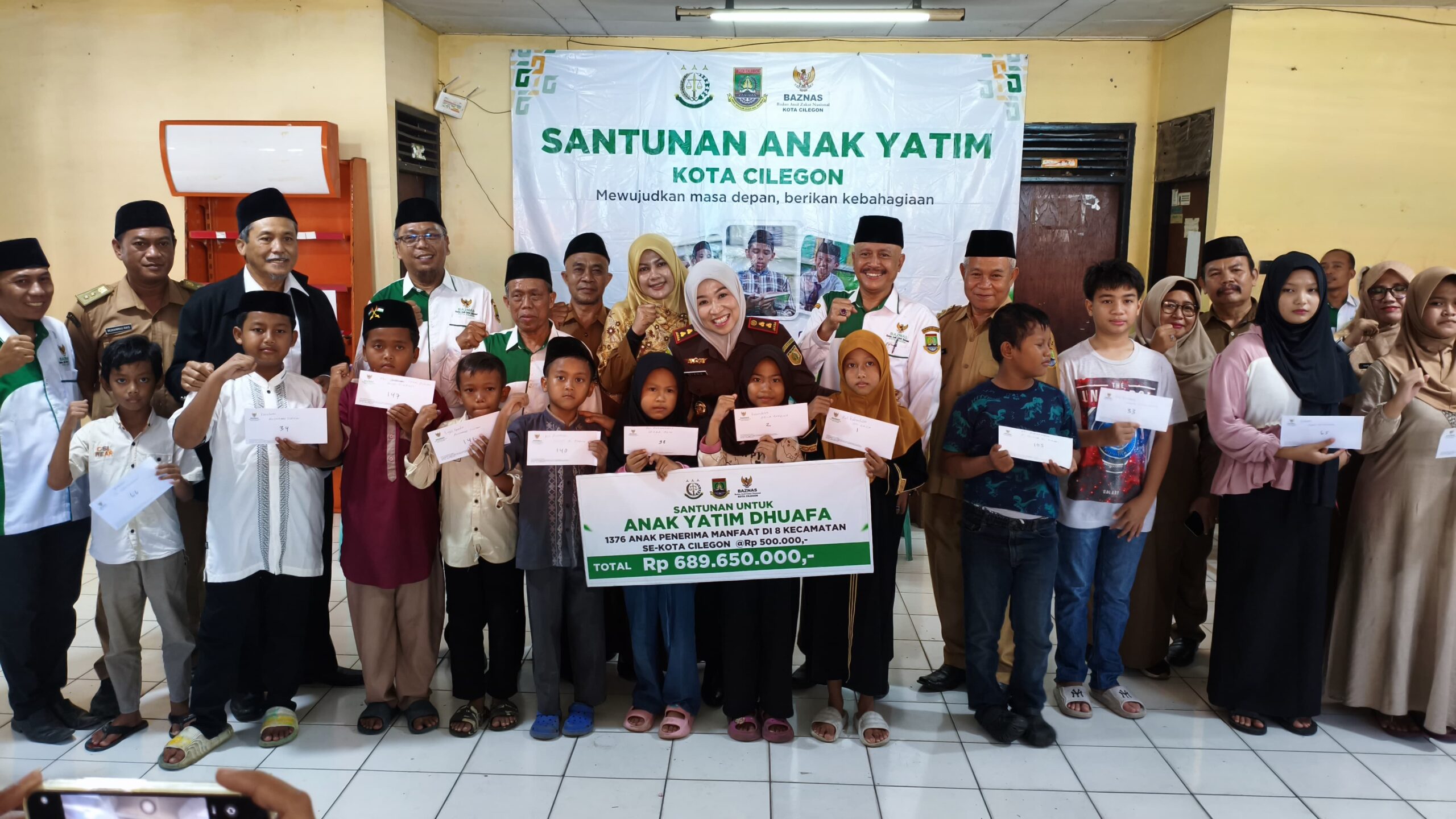CILEGON, RUBRIKBANTEN – Kejaksaan Negeri (Kejari) Cilegon menunjukkan komitmennya terhadap kepedulian sosial dengan menggandeng Badan Amil Zakat Nasional (BAZNAS) Kota Cilegon dan Ikatan Adhyaksa Dharmakarini (IAD) Daerah Cilegon dalam aksi mulia menyantuni 1.376 anak yatim di seluruh wilayah Kota Cilegon.