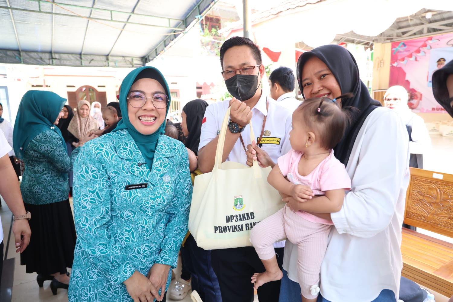 Dalam kesempatan tersebut, Tinawati menyerahkan 50 paket makanan bergizi kepada keluarga penerima manfaat yang terdiri dari ibu hamil dan balita berisiko stunting. Bantuan ini disalurkan melalui Gerakan Orang Tua Asuh Cegah Stunting (GENTING), sebuah program gotong-royong yang mendorong berbagai pihak menjadi orang tua asuh bagi anak-anak stunting di Banten.