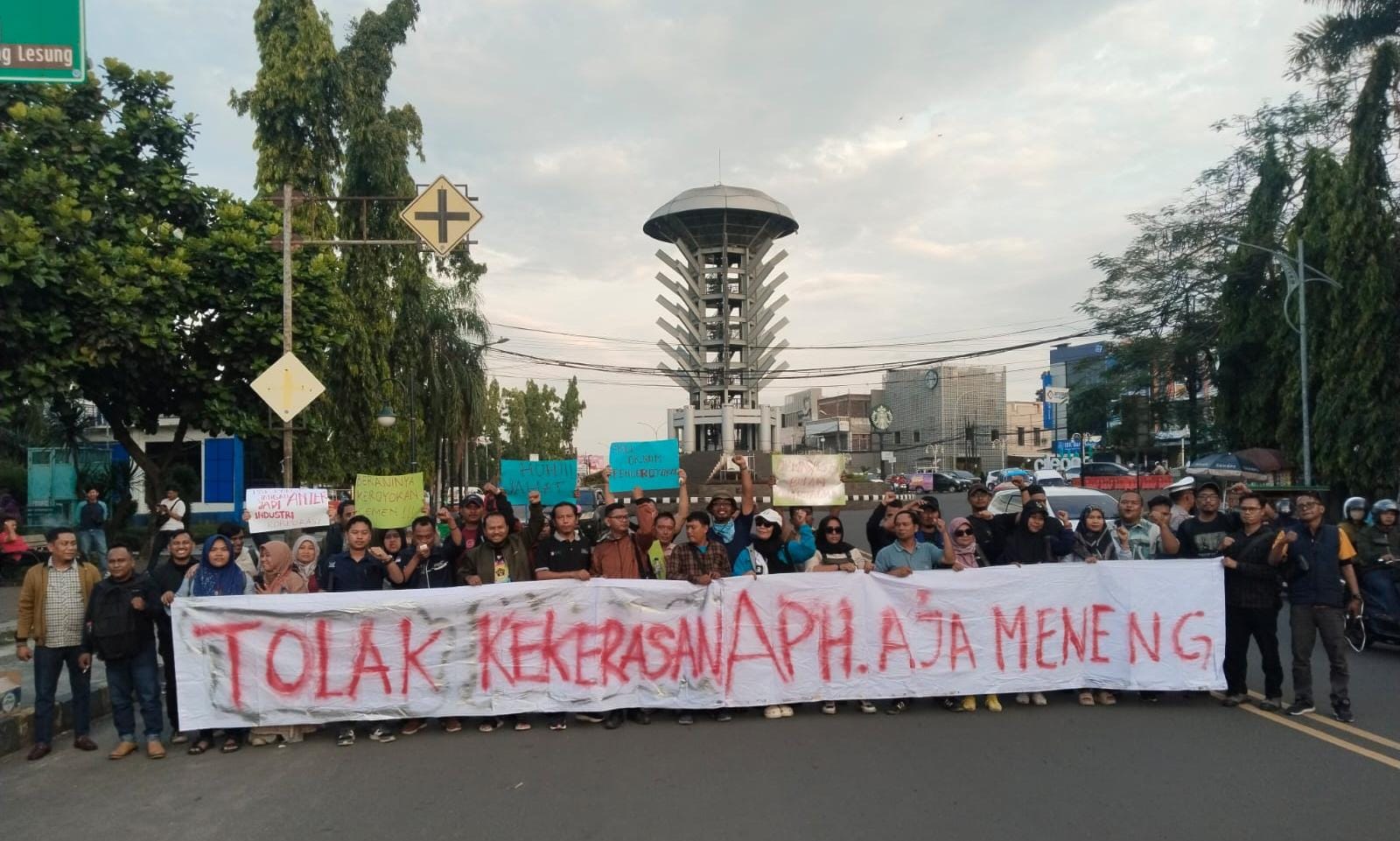 Reaksi cepat datang dari Kota Cilegon. Puluhan jurnalis menggelar aksi solidaritas di Landmark Kota Cilegon sebagai bentuk perlawanan terhadap kekerasan yang dianggap mengancam kebebasan pers dan supremasi hukum di Banten.