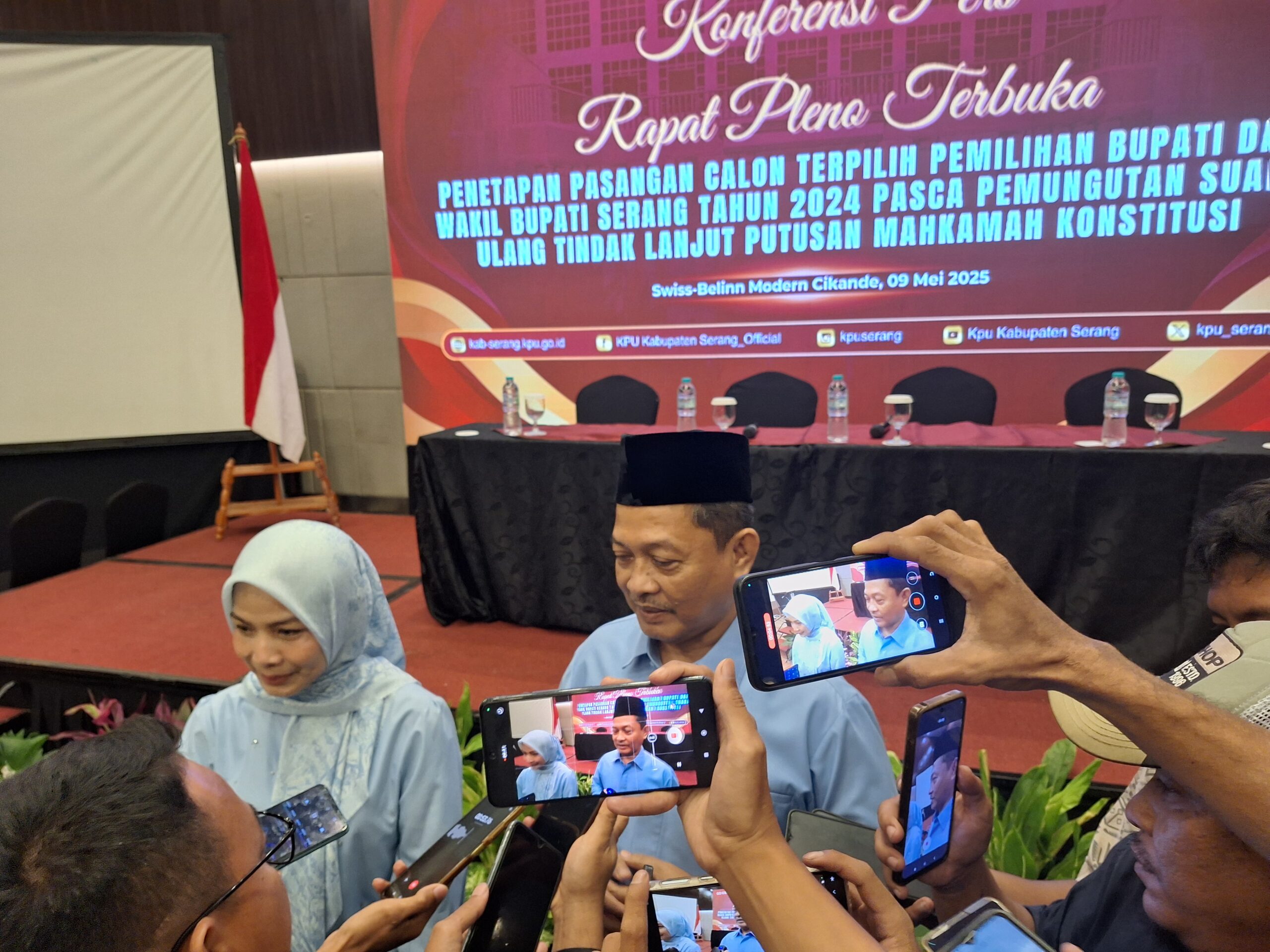 SERANG, RUBRIKBANTEN – Calon Bupati terpilih Kabupaten Serang, Ratu Racmatu Zakiyah, menunjukkan sikap bijak dan dewasa saat menanggapi ketidakhadiran Bupati petahana Ratu Tatu Chasanah serta pasangan calon (paslon) nomor urut satu dalam acara penetapan Bupati dan Wakil Bupati Serang terpilih oleh Komisi Pemilihan Umum (KPU) Kabupaten Serang, yang digelar di Hotel Swiss-Bellinn Modern Cikande, Serang, Jumat (9/5/2025).